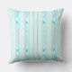 Esta ilustración de almohadas de tiro cuadrado presenta una impresión de barra vertical de color turquesa oscuro y reflejada sobre un suave fondo azure y ciannista.