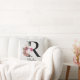 Cojín Decorativo Inicial floral rosa boho monograma R