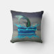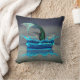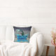 Tire una almohada con la imagen de aleta de sirena en el frente y una estrella de mar en un fondo gris.