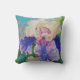Acuarela de un iris barbudo suave grande precioso en toda su gloria. Los azules, las púrpuras y los amarillos de la floración grande del verano contra un fondo verde suave hacen una declaración dramática. Utilizado a lo largo de la historia como símbolo del poder por los monarcas y las familias reales, el iris también se conoce como la diosa del arco iris en la mitología griega. De la colección floral del artista Katherine Foltuz de la acuarela.