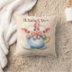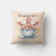Cute "It takes Two" Teacup Piglets Design Cushion featuring, two cute piglets in a teacup set on a white floral daisy and yellow background.