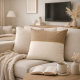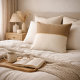 A beech-inspired neutral accent in soft ivory and warm taupe, divided by a fine gold stripe for subtle contrast. The clean two-tone layout brings structure and visual balance to sofas, beds, and reading nooks, pairing well with layered neutrals and modern interiors.