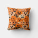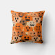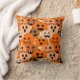 Esta almohada de tiro tiene un diseño de jack-o-linternas con caras diferentes que se repiten en cada cuarto.