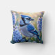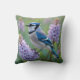 Una almohada de doble cara de tiro con dos hermosos Blue Jays sentados en una rama de lila.