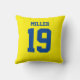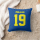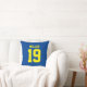 Añada un nombre y un número para personalizar esta almohada de acento de doble cara de color azul y amarillo inspirada en la camiseta deportiva. Es un regalo excelente para un fanático o atleta deportivo. Las opciones para cambiar el color y el tamaño de las fuentes están disponibles.