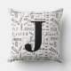 Experience a distinctive typography custom name throw pillow designed for "Jessica" with the monogram J. This gift stands out with its background pattern formed from the letter "J" and its contrasting black, white, and grey hues. It's also easily customized for any name or initial.