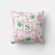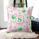 Una almohada de monograma con un divertido diseño de jirafa. Cuenta con jirafas rosadas con cosmopolitans, flores y hierba verde larga. Los colores son vibrantes y el diseño es llamativo para la primavera y el verano. Es la adición perfecta para la decoración de una sala o dormitorio y agrega un toque juguetón a cualquier espacio.