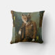 Este cojín se ilustra con un retrato de un joven zorro victoriano en un traje y sosteniendo su gorra.