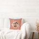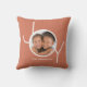Este elegante Navidad Holiday Photo Pillow está decorado con la palabra JOY en una moderna tipografía blanca sobre un fondo de terracota. Personalizable fácil con tu foto y nombre.