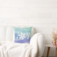 Esta bella almohada muestra la palabra alegría con un copo de nieve en lugar de la letra "o". Está decorado con una colorida acuarela en tonos azules y violetas. Una manera maravillosa de expresar la alegría de la temporada en tu casa.