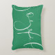 Una escritura con letras a mano "alegre" en blanco contra un fondo verde por un lado y una raya festiva por el otro hacen de esta almohada un regalo de vacaciones perfecto o un objeto de decoración.