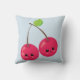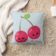 almohadas decorativas para tu casa, esta almohada de tiro contiene un bonito par de cerezas rojas sobre un fondo azul claro (frontal y posterior). La parte frontal tiene un lugar donde insertar su nombre en un bonito tipo de letra rojo cursivo. ¡Personaliza tu almohada hoy! Gráfico creado por: Diseño de Prettygrafik (https://www.etsy.com/shop/Prettygrafikdesign)