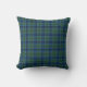 almohada de acento color azul, verde azulado y negro trenzado, hecha en el estilo escocés Keith. Personalizar para agregar texto a esta almohada colorida. La parte trasera de la almohada es el mismo diseño de arcilla escocesa que la parte delantera. Hace una gran idea de regalo.