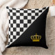 Elegante corona dorada sobre un elegante Cojín decorativo de ajedrez blanco y negro. El diseño sencillo pero elegante combina con la mayoría de los colores.