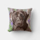 Cojín Decorativo Labrador marrón chocolate en una madera azul