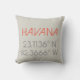 La almohada de hilado muestra coordenadas de mapa de longitud y latitud para La Habana, Cuba en fuente con dificultades modernas