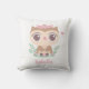 Un lindo búho con un arco de polka rosa se sienta en un parche con varias flores. El patrón de los puntos de polka en el otro lado de la almohada. Personalizar con el nombre en la plantilla de texto proporcionada. Perfecto para decorar una guardería de bebé o una habitación de chicas.