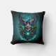 Lechuza con elementos mágicos. El diseño se caracteriza por un impresionante búho estilizado con sus alas extensas, diseñadas en una vibrante paleta de colores morados, azules y blancos. El búho exuda una presencia majestuosa, mientras sus ojos penetrantes amarillos miran directamente al espectador, creando un sentido de intensidad y misterio. Patrones intrincados y giratorios se despliegan alrededor del búho, reminiscentes de los símbolos mágicos, dando a la imagen general un aura mística.