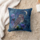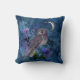 Cojín Decorativo Lechuza morada mística y luna sobre azul grisáceo