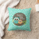 Cojín Decorativo Lechuzas Cutas; Aqua Green Chevron