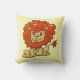 Amarillo y naranja tiran almohada con un lindo león personalizado. Ilustracion ©2019 Michael C. Paul https://mikepaulart.com