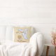 La almohada de guardería o la almohada de habitación de un niño tienen un fondo beige suave que puede cambiar a otro color si hace clic en el botón personalizar y, a continuación, mira a la derecha para el pequeño enlace de edición. Delante de la almohada aparece un oso de peluche dulce haciendo un pie de mano frente a una letra N de patrón estrella azul pastel con texto que dice N es para Nolan. El área de texto está lista para que cambie al nombre de su hijo.