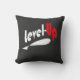 It's an upbeat Polyester throw pillow in black designed with level-up catchy phrase/words