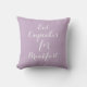 Esta almohada morada clara está decorada con el bonito dicho "Coma pasteles para desayunar" delante y la parte trasera está decorada con un nombre y fecha de nacimiento, lo que la convierte en el lugar ideal para una habitación o una guardería.