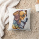 Ilustracion de un bonito perro con tonos coloridos, representado en un estilo acuático.