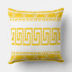 Esta almohada de tiro tiene un tema blanco y amarillo angerino, con formas contrastantes y clásicamente elegantes de línea de litera.
