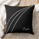 Líneas onduladas abstractas blancas modernas en Cojín decorativo negro plateado. El diseño sencillo pero elegante combina con la mayoría de los colores. La caligrafía de texto se puede personalizar.