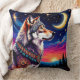 Cojín Decorativo Lobo bajo la luna creciente de la noche