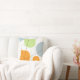 Este moderno, almohada de tiro del diseñador ofrece formas abstractas en naranja, verde y el azul que fue inspirado por el movimiento de arte atómico de los años 50.