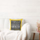 Decoración inspiradora almohada de diseño con textos blancos y amarillos en el fondo de un tablero de tiza dice Entre las idas y venidas del mundo. ¡Observar cómo los finales se convierten en comienzos!
