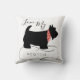 Esta almohada de tiro con temática de perro presenta un lindo terrateniente escocés negro con una bandana de manteca roja y blanca. El texto dice "Ama a mi Escocia", que puede dejarse tal como está o personalizarse. ¡Perfecto para los amantes de los perros de todas las edades! Diseñado por el artista © Tim Coffey.