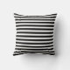 Patrón rayado blanco y negro arroja almohada con un corazón rosado y un texto de AMOR blanco en el centro.