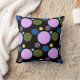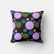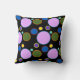 Círculos, manchas y lunares caprichosos adornan esta almohada. Círculos de colores brillantes sobre fondo negro agregarán color y diversión a cualquier decoración del hogar.
