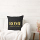 El diseño de almohadas de lanzamiento Lux incluye coordenadas de mapa de latitud y longitud de Roma, Italia en fuentes doradas sobre fondo negro.