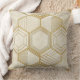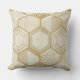 A sophisticated seamless geometric pattern throw pillow featuring a grid of interlocking hexagons outlined in metallic gold. Each hexagon contains elegant linework and subtle geometric details, set against a softly textured cream and beige marble background. The blend of warm neutrals and gold accents gives this design a modern, refined, and luxurious feel.