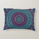 Un bonito patrón radial arabesco pintado con colores morados, azules y verdes con bordes dorados.