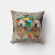 ¿Sensación maravilloso? Esta almohada de tiro ofrece dos perros del golden retriever afuera, sonriendo y llevando la ropa teñido anudada.