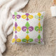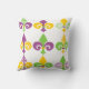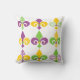 Esta almohada de tiro tiene un diseño de Mardi Gras de fleur de lis alineado al otro lado del diseño con diferentes diseños.