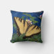 Fotografía de una mariposa de cola tragaluz amarilla y negra en la almohada de tiro