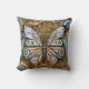 Se trata de una almohada de tiro al vapor con una mariposa con relojes vintage y los engranajes interiores de los relojes en tonos azul claro y marrón.