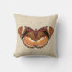 Lleve una almohada en un ilustracion vintage de una elegante mariposa monarca en tonos marrones, rojos, naranjas y crema sobre un fondo beige claro