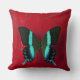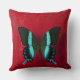 Cojín Decorativo Mariposa negra y azul en la pared roja