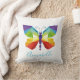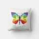 Bonito personalizada almohada de lanzamiento para tu amante favorito de las mariposas. Una mariposa pintada simple pero elegante, en tonos vivos del arcoiris. Delantero de la almohada tiene una gran mariposa centrada, con cualquier nombre escrito abajo. La parte posterior de la almohada tiene un diseño de mariposas pintadas más pequeñas dispersas.