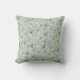 En la almohada de estilo retro de arte folclórico hay mariposas y flores blancas pequeñas sobre fondo azul claro.