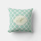 Almohada marroquí moderna elegante del verde menta y blanca del monograma de tiro.