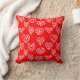 Esta almohada de tiro tiene un moderno diseño de San Valentín de máscaras blancas dispersas en un campo de rojo.